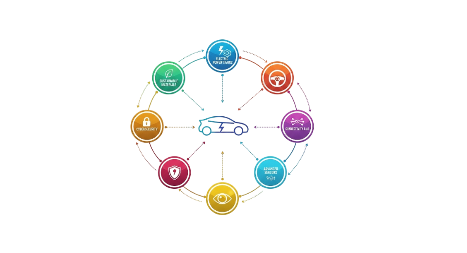 By Technology Type (Autonomous Driving Systems, Advanced Driver Assistance Systems, Electrification Technologies, Connectivity & IoT), By Vehicle Class (Passenger Cars, Light Commercial Vehicles, Heavy Commercial Vehicles, Electric & Hybrid Vehicles) By Application (Safety & Security Systems, Powertrain & Efficiency, Telematics & Connectivity, Infotainment & Comfort), |
