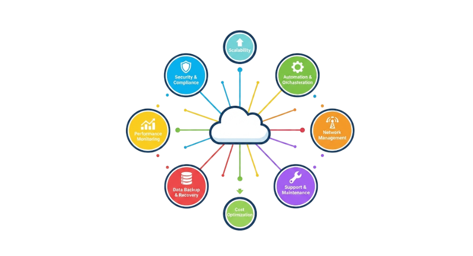 Big companies with complicated IT setups depend on managed services to keep things running smoothly, expand worldwide, and keep a close eye on their systems. Outsourcing cloud tasks cuts down on internal management, makes sure they follow the rules, and supports mixed or multi-cloud plans across different departments and locations.